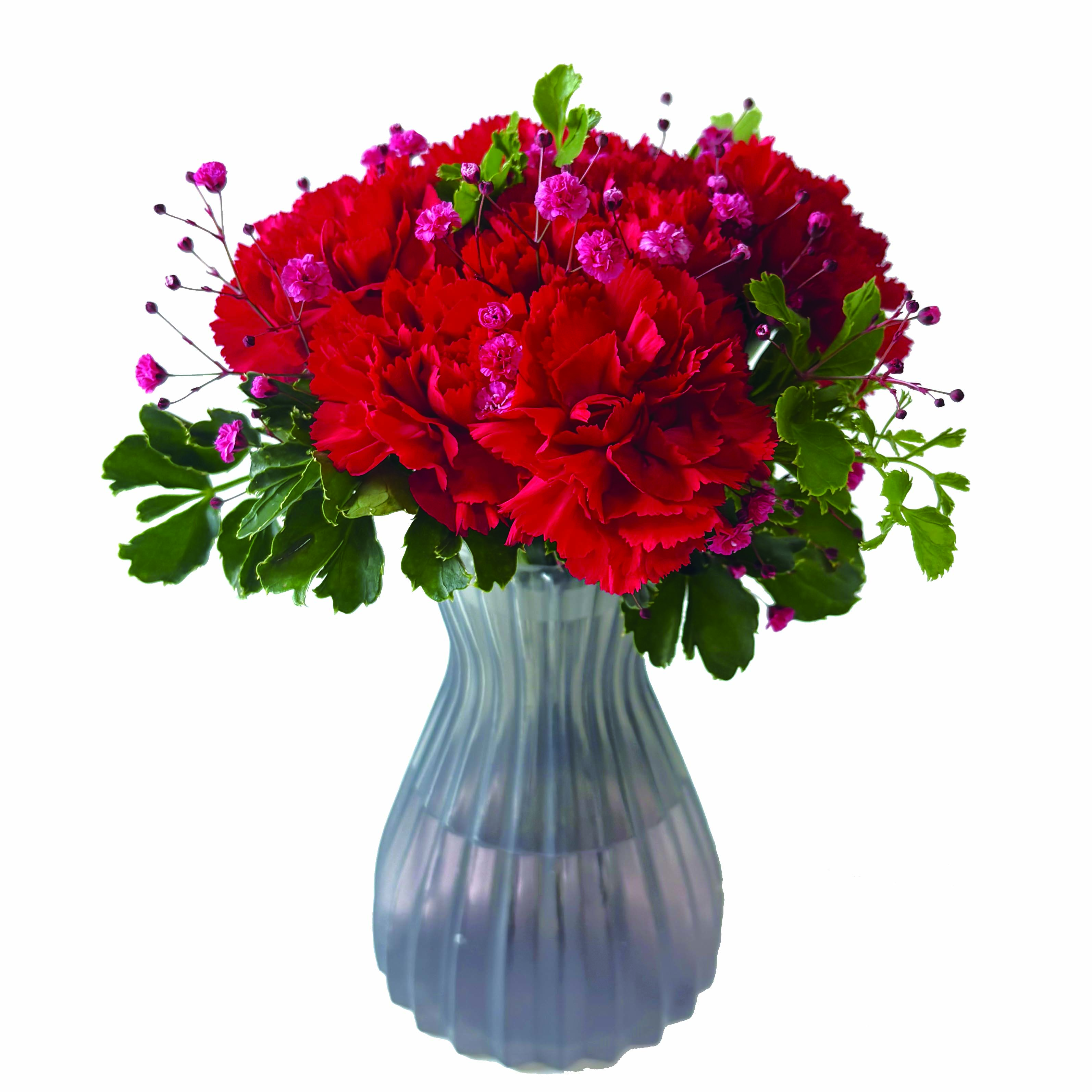 今年の母の日フラワーギフトは、樹脂製の花瓶にお花が入ったそのまま飾れるアレンジメントタイプのブーケです。